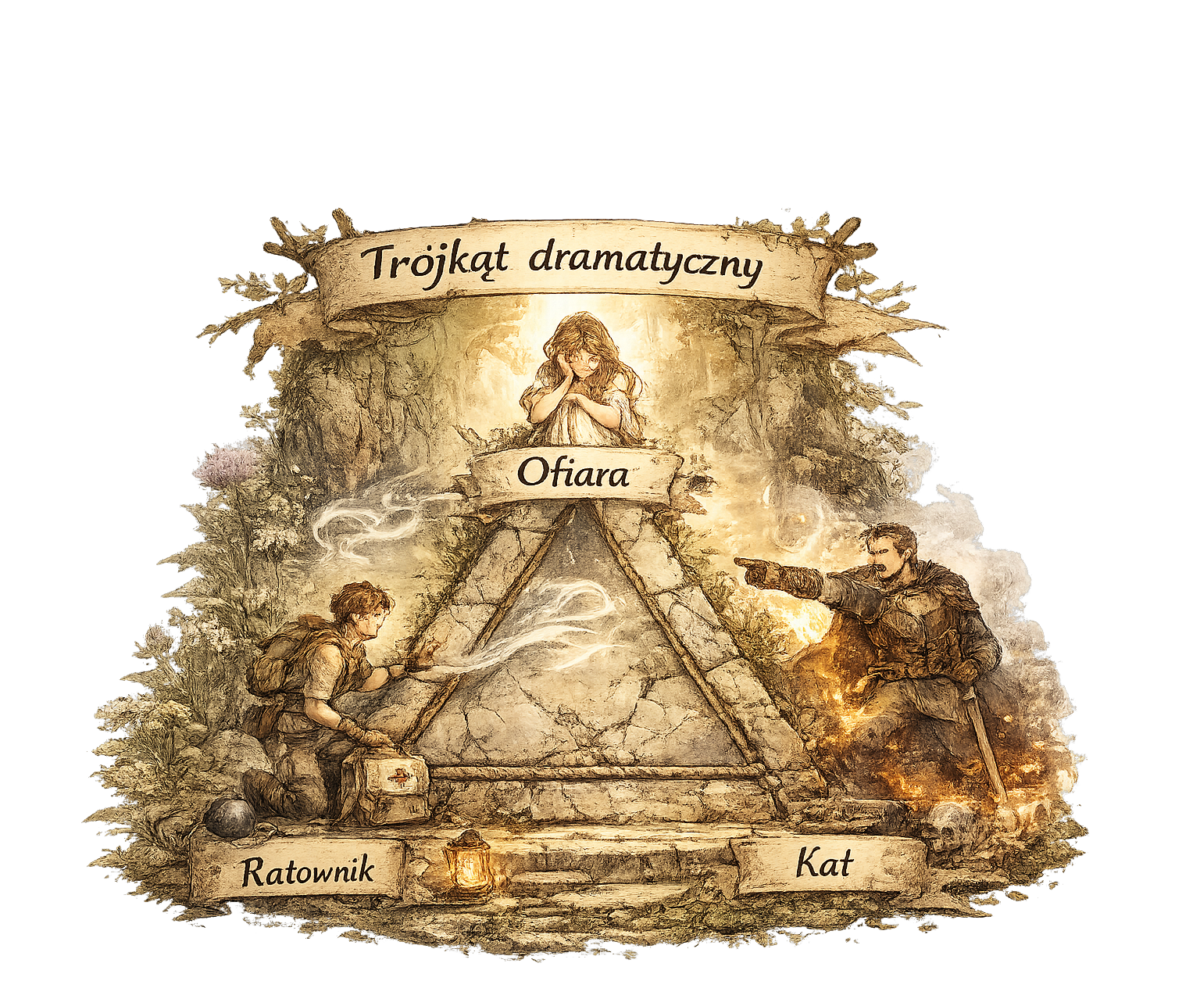 Trójkąt Karpmana (trójkąt dramatyczny) to model z psychologii relacji, który opisuje trzy role, w które ludzie wchodzą w sytuacjach napięcia, konfliktu lub emocjonalnego przeciążenia: Ofiara, Ratownik (Wybawiciel) i Prześladowca (Kat). Kluczowe w tym modelu jest...
